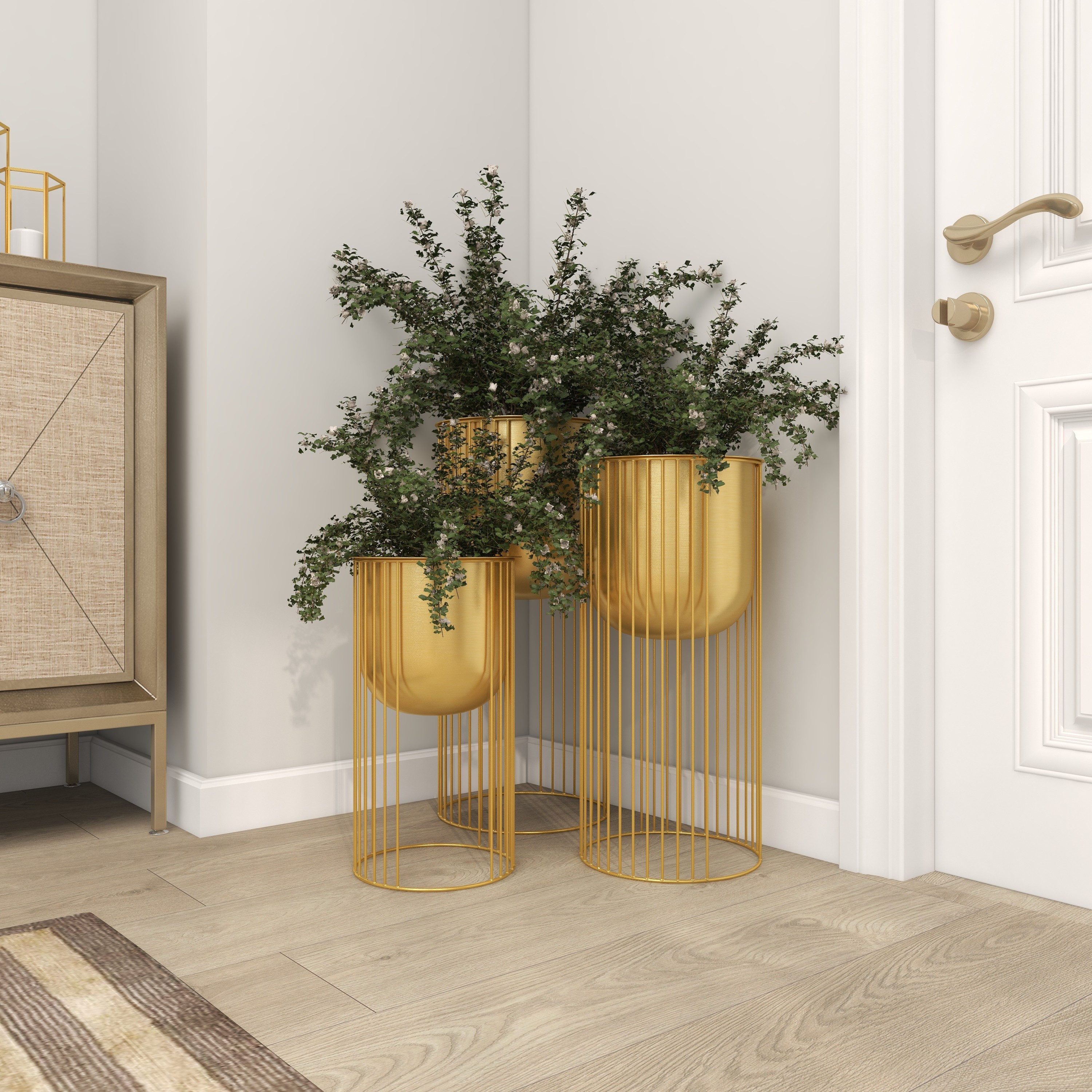 Decmode 24 20 16 H Deep Recessed Dome Gold Metal Planter With Elevated Caged Stand 3 Count Walmart Com